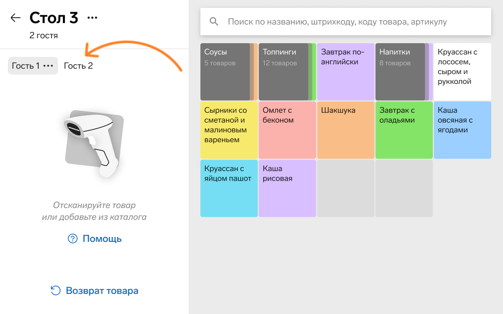 Разделение заказов по гостям поможет упростить обслуживание столика и избежать путаницы при выдаче.